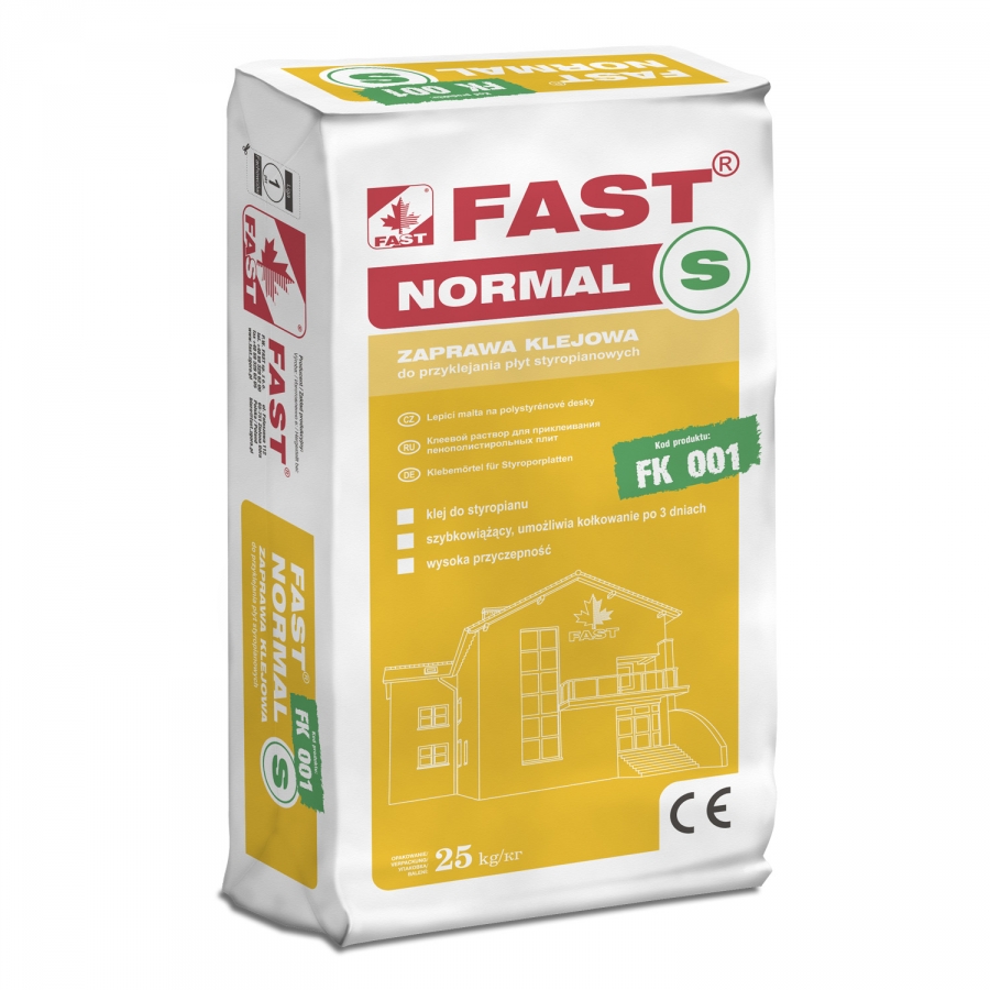 FAST NORMAL S Insulation Adhesive is a dry mineral mixture, modified with synthetic polymers, frost- and water-resistant with increased flexibility. Available in 25kg bags. FAST NORMAL S owing to its characteristic features can be perfectly used for fixing foamed polystyrene panels for brick-walls, blocks and ceramic materials, for concrete, aerated concrete, cement and cement-lime plasters.